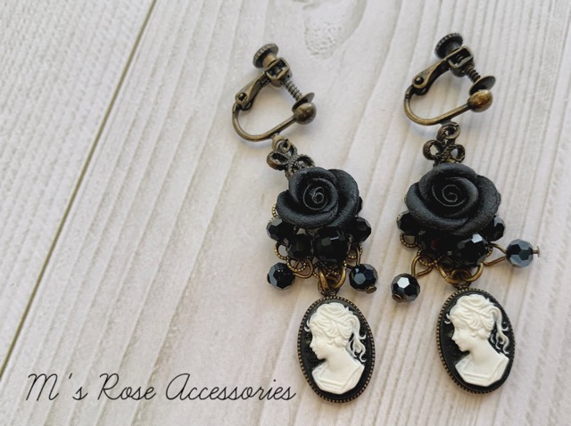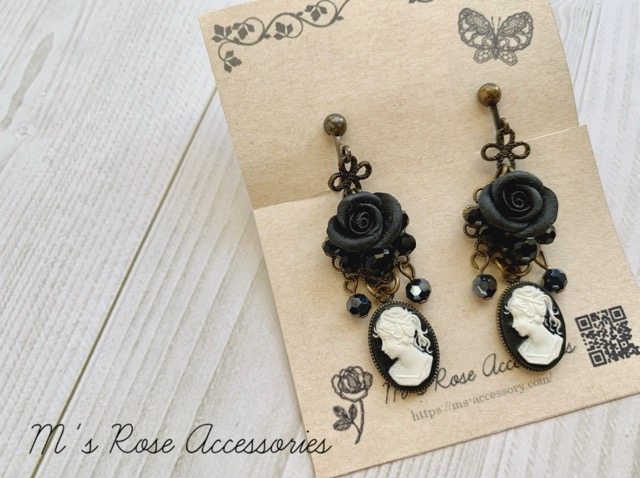 黒薔薇ブーケの可憐なピアスです。
