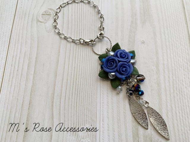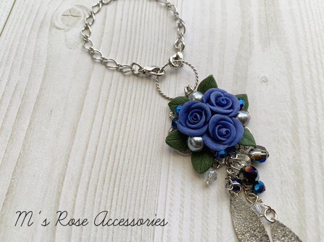 サファイアブルー薔薇の可愛いバッグチャームです。