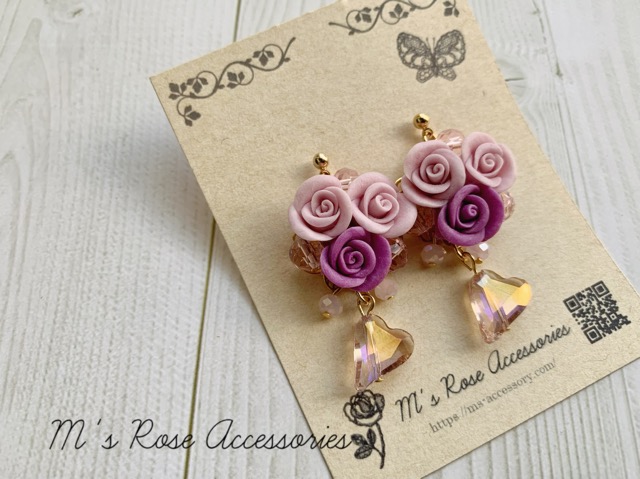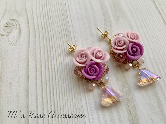 アメジスト薔薇ブーケの華やかなピアスです。