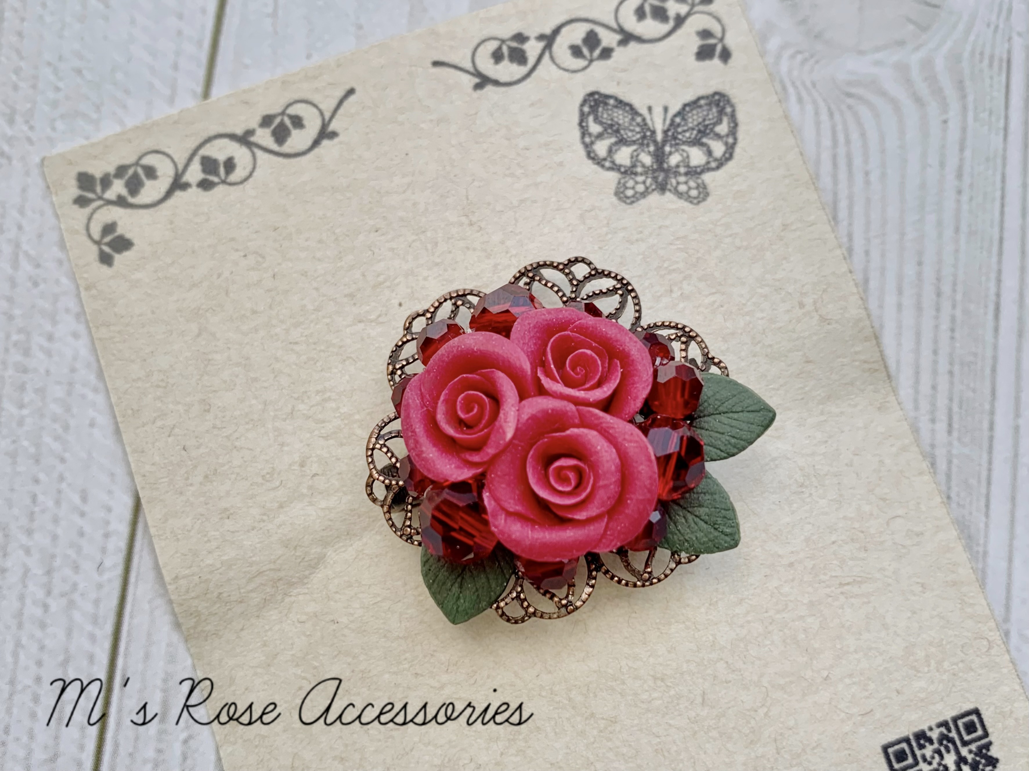 クレイ薔薇の柔らかな色合いが可愛らしいブローチです。